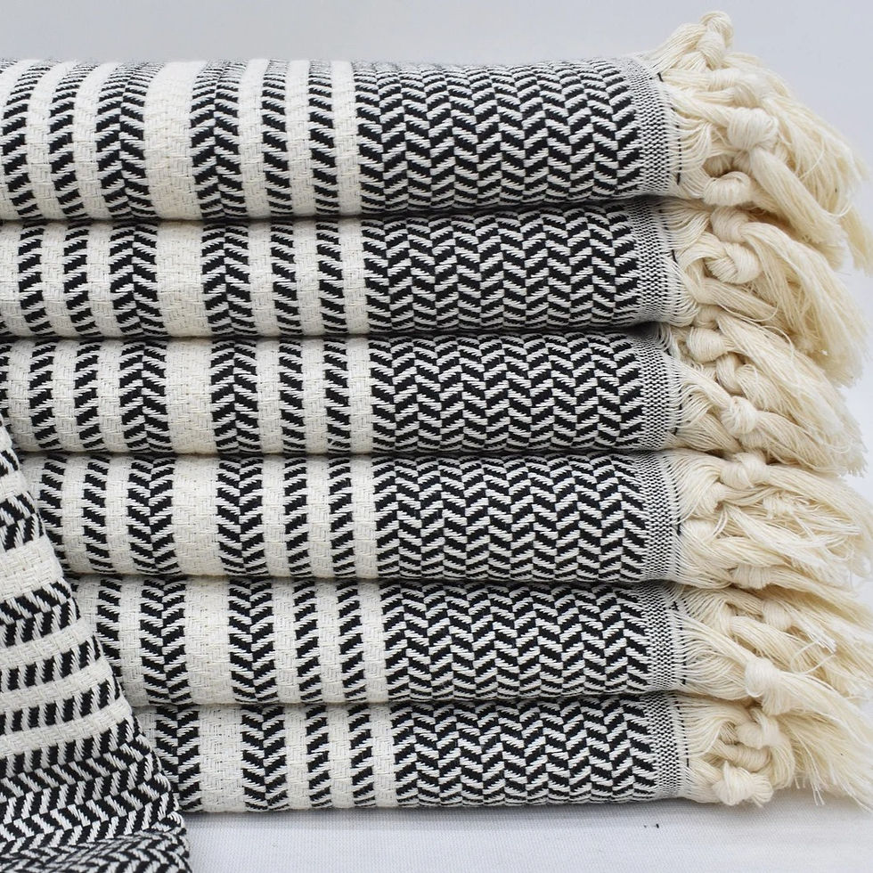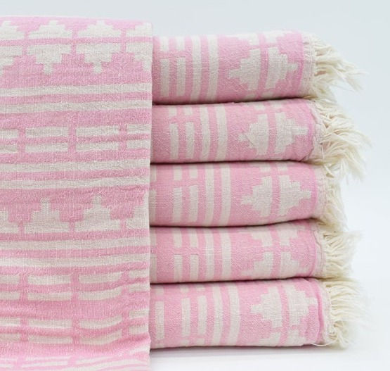 These towels, also named Peshtemals, are a very traditional design dating back hundred of years. They were originally used in the Hammams or public baths. Our towels are organic, 100% cotton, hand finished in Turkey and are naturally hypoallergenic. Their long cotton fibres make them strong and versatile. They are fine, lightweight, quick drying and they take up very little space in your luggage, beach bag and apartment. If thats not all enough reason to invest then look at the rainbow of colours and patterns available!
